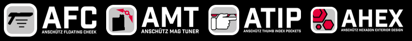 La crosse en aluminium aéronautique à haute résistance ANSCHÜTZ Hexagon Exterior Design (AHEX) combinée avec un avant en acier extra solide offre une stabilité maximale et une ergonomie ultramoderne. Les ANSCHÜTZ Thumb Index Pockets (ATIP) intégrés agissent comme des ailes frontales et garantissent un maintien constante. Pour un contrôle parfait, le Barricade-Stop à l’arrière du garde main garantit une prise ferme grâce à son empreinte texturée. La crosse squelette modulaire, légère et rigide assurent un équilibre optimal.